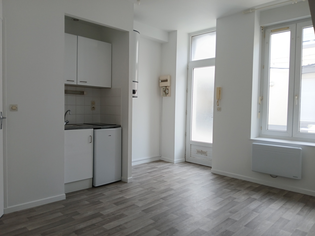 Pièce principale avec kitchenette équipée de plaques de cuisson et d'un réfrigérateur, une salle d'eau/toilettes. Peinture et revêtements en très bon état, meuble vasque dans salle d'eau. DISPONIBLE DE SUITE . Les charges comprennnent les communs l'eau froide, la TEOM et feront l'objet d'une régularisation annuelle. HCL 136 euros dont 51 euros pour l'état des lieux d'entrée. Les informations sur les risques auxquels ce bien est exposé sont disponibles sur le site Géorisques : www.georisques.gouv.fr